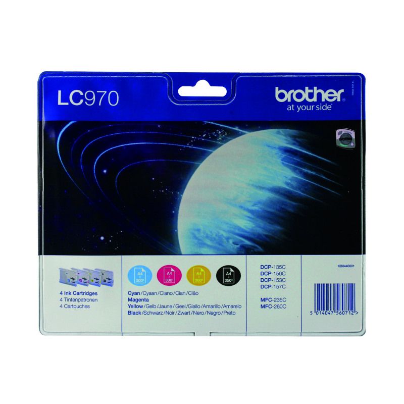 Brother LC-970 Black /Cyan/magenta/Yellow Inkjet Cartridge (Pack of 4) LC970VALBP