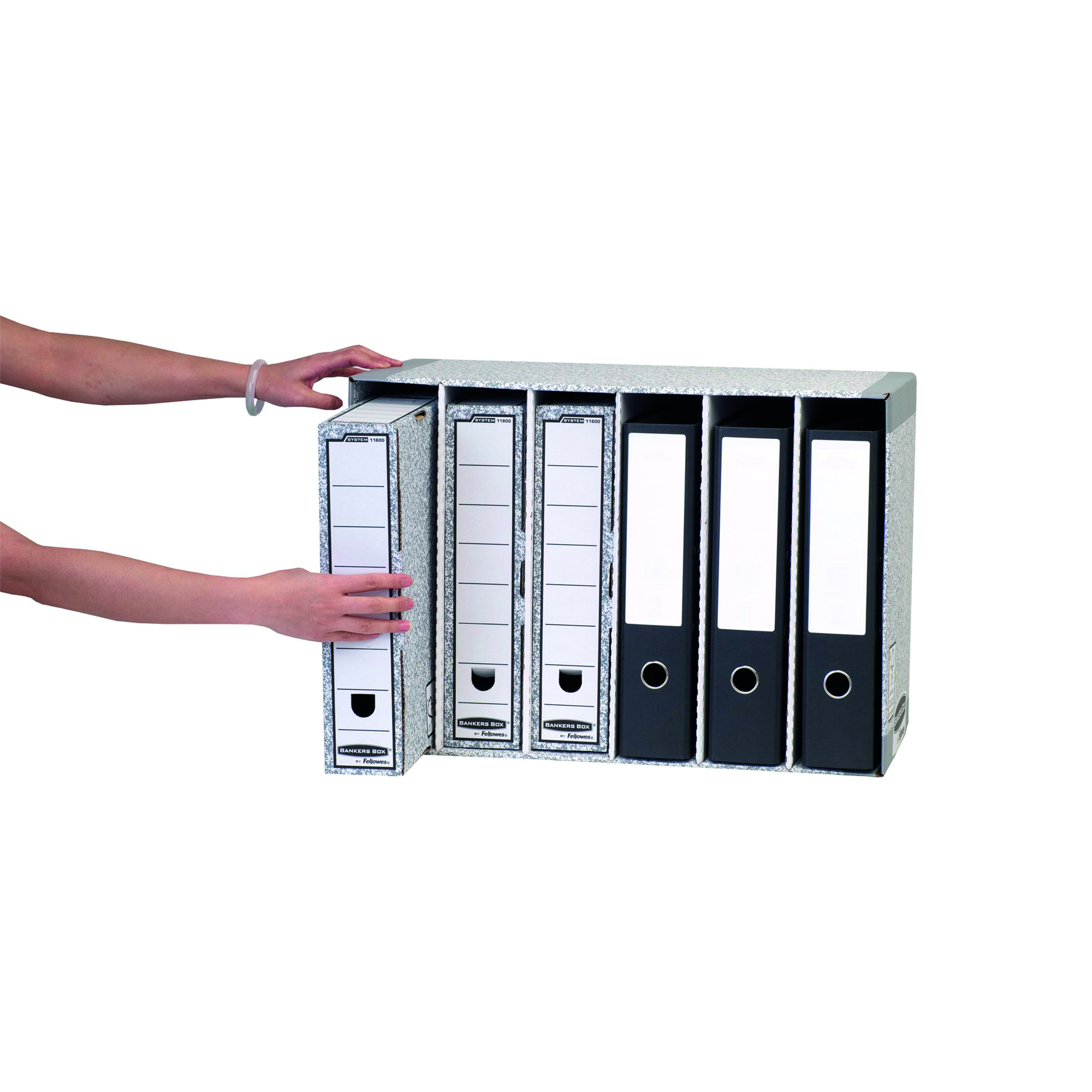 - For desktop storage of 80mm Bankers box transfer files, lever arch files and ring binders